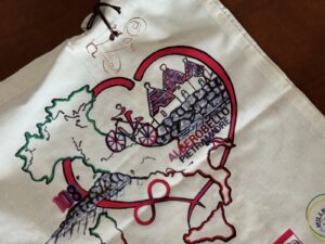 I ragazzi hanno realizzato la sacca con un tessuto riciclato, personalizzata con un messaggio scritto da loro e corredata di un gadget che riproduce una bicicletta realizzata a mano intrecciando il filo di rame. Una creazione originale e soprattutto sostenibile che sarà donata ai ciclisti in ricordo della gara alberobellese.