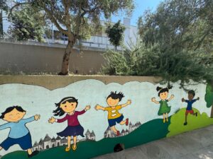Anche i muri dell’atrio della scuola dell’infanzia Notarnicola narrano Alberobello attraverso gli sguardi delle bambine e dei bambini frequentanti la scuola.